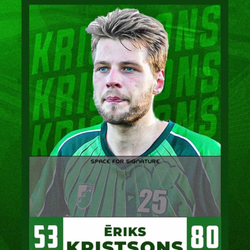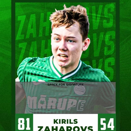 1 Kristofers Minajevs 1 Valērijs Urigajevs 2 Ēriks Kristsons 3 Tymofii Marusii 4 Martins Meiers 5 Toms Ralfs Šteinbergs 6 Ričards Buivids 7 Kristiāns Korsaks 8 Rodo Yousouf 9 Edgars Sajenko 10 Guntis Griškovs 11 Viktors Čebotarjovs 12 Raitis Roga 13 Roberts Hons 14 Maksims Molčanovs 15 Georgijs Sačkovs 16 Ralfs Sniedze 17 Romāns Koroļčuks 18 Yevhenii Kholmetskyi 19 Rinalds Sadovņikovs 20 Aleksejs Davidenkovs 21 Gatis Štrauss 22 Tomass Zāgs 23 Ņikita Kokorevičs 25 Kirils Zaharovs 26 Mikuss Dobrājs 27 Dominiks Norkuss 28 Niks Kārkliņš 33 Verners Gudermanis 40 Rūdolfs Zandreiters 50 Kristaps Bareika 99 Matvii Marusii