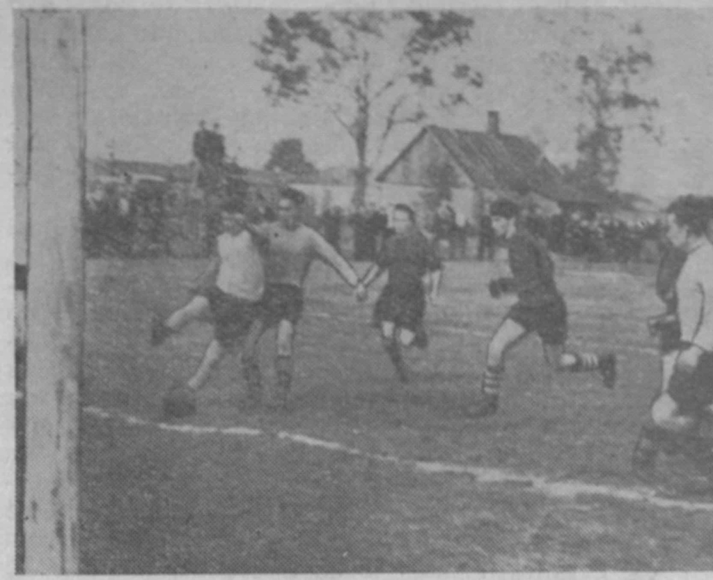 Mārupes kūdras fabrikas komanda uzbrukumā, 1958. gads