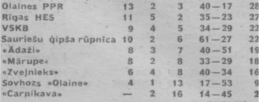 1970. gada Rīgas rajona meistarsacīkšu tabula.